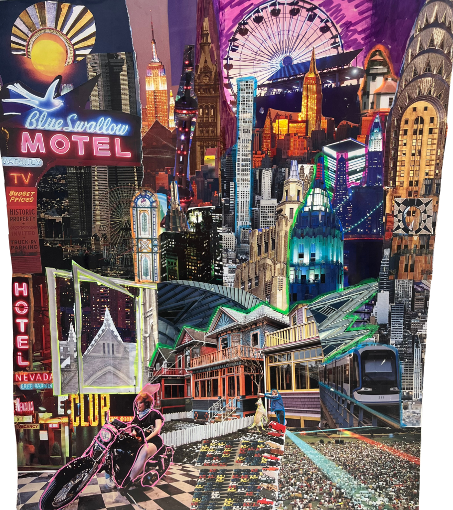 Collage “Higher Roots” Collage on paper. “I Built This City” 14” x 17” on paper “Look at this view!” 8.5” x 11” on paper “Barzilla” “No Scurvy in Space” “Wizard of Jaws” The above collages are all hand cut paper, but you can see some digital collages here. Share this: Click to share on X (Opens in new window) X Click to share on Facebook (Opens in new window) Facebook Like Loading... Share this: Click to share on X (Opens in new window) X Click to share on Facebook (Opens in new window) Facebook Like Loading...